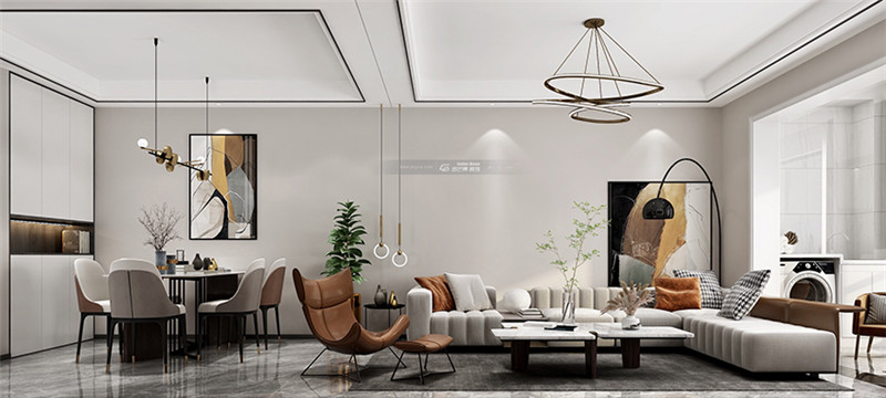 開放的客餐廳,大氣簡潔的設(shè)計(jì)讓家居空間變得自由且氣質(zhì),中間用燈飾作為區(qū)域的分隔,讓客餐廳既有互動(dòng)也區(qū)別開來。
