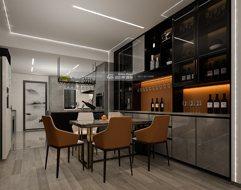 精奢腔調,現代風情,舒適愜意。色彩的交互,材質的碰撞,簡潔的克制,有度的張揚。橙色現代感餐椅,打破寧靜,點亮空間。色彩跟線條都遵循著極簡,傳達著一種細致又隨心的生活方式。