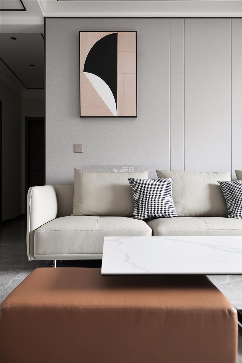 簡約的白墻刪繁就簡,傳達著簡潔時尚的空間語言。當清晨的陽光透過大大的落地窗灑進來,不刻意迎合任何的姿態,肆意而自由的穿梭在沙發后、窗簾上、茶幾前。