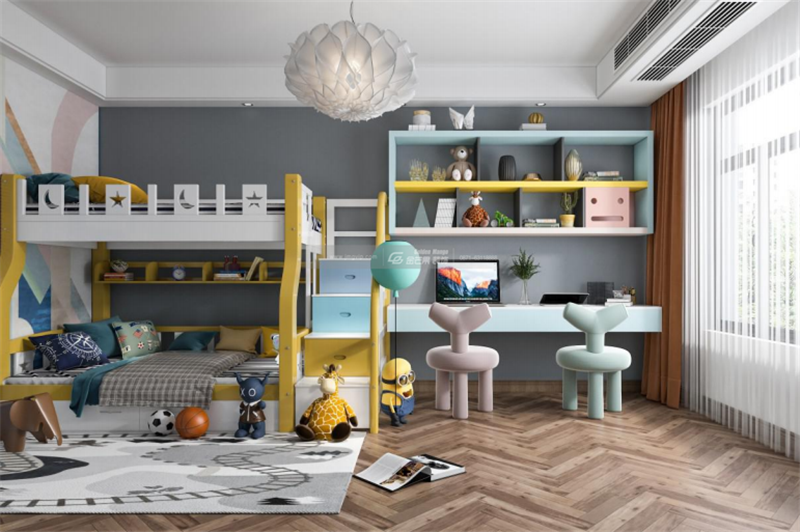 為孩子渲染一個(gè)繽紛的世界,上下床和夢幻的燈飾,帶來純真、可愛的夢幻花園。