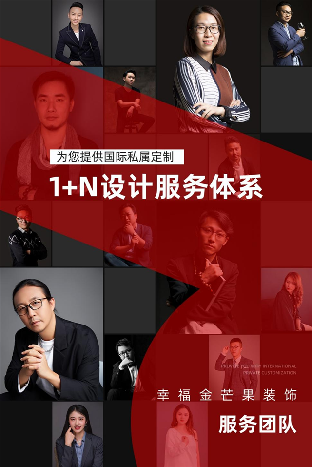 設計師均是5年以上經驗,,每年兩次考核淘汰機制。堅持人性化個性定制,1+N設計服務體系(1名主案設計師+2名助理設計師+軟裝設計師+材料專員+預結算審核員)。