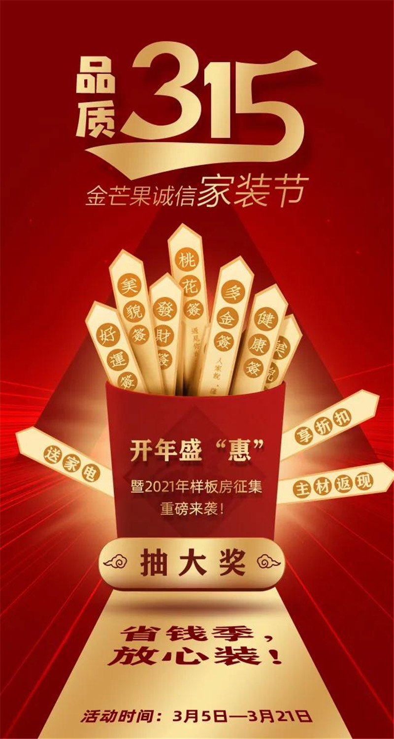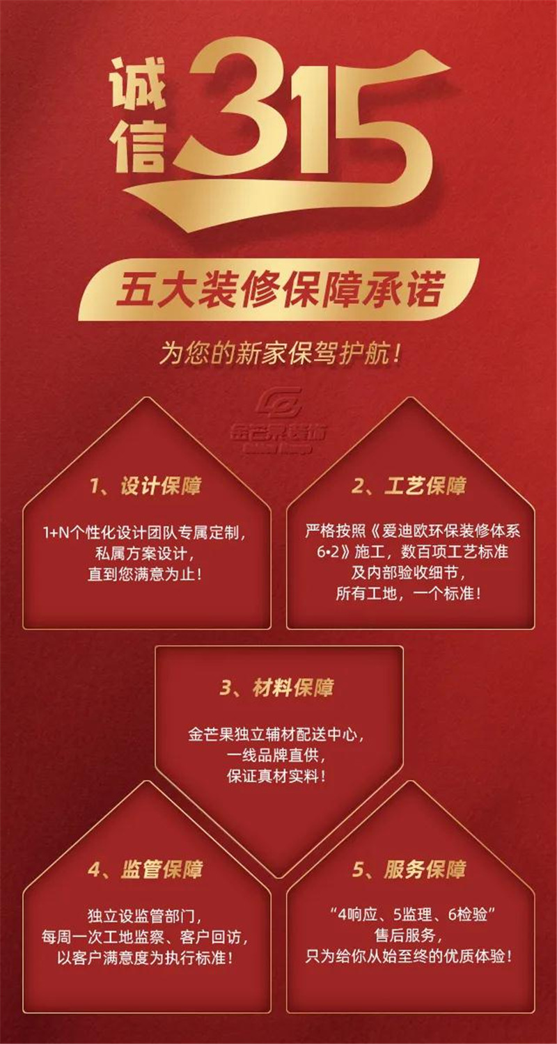 誠信315,各大家裝公司都有備而來,金芒果一直踐行的是價格、工藝、環保、服務全透明的家裝模式。我們能做的就是在給“利”的活動基礎上,保證消費質量和消費者權益。